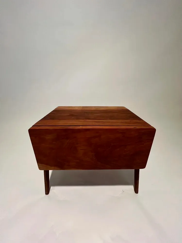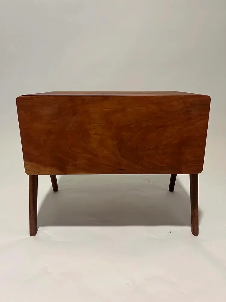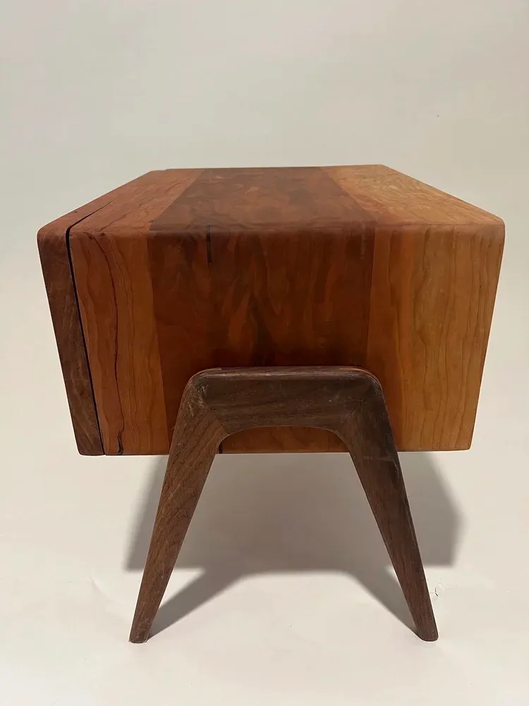 Cherry nightstand with walnut leg assembly.