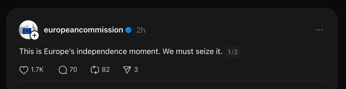A Threads post by the EU’s legislature, the European Commission, which has not enabled Fediverse sharing. Come on.